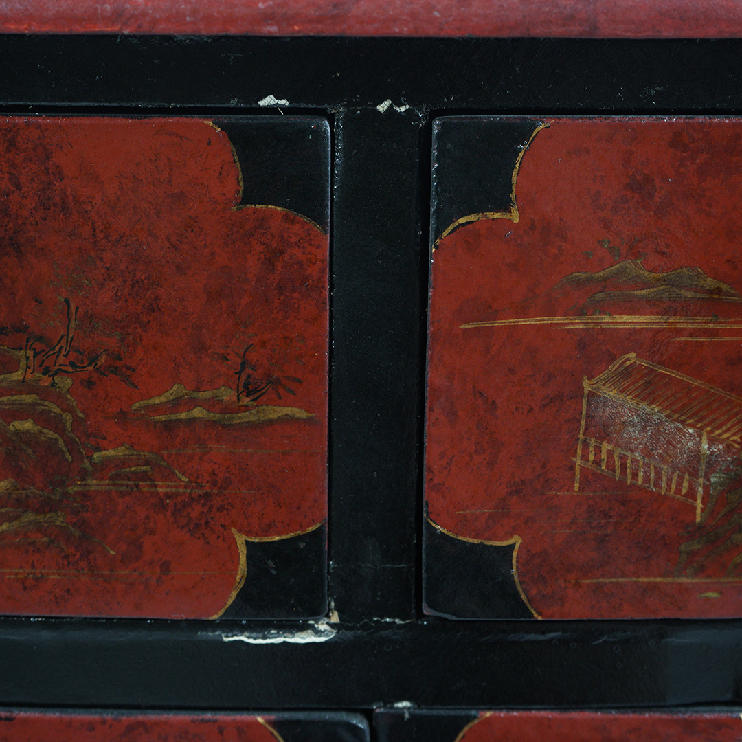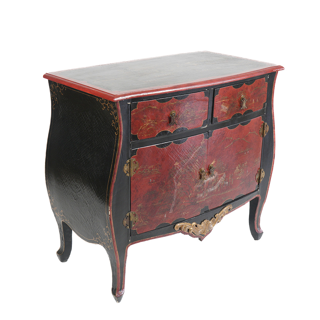 Transform your living space with the eye-catching look of our redwood cabinet in a bold red finish and antique carvings. Meticulously crafted, this piece seamlessly combines the vibrancy of redwood with exquisitely detailed drawer handles, creating a statement of boldness and sophistication.