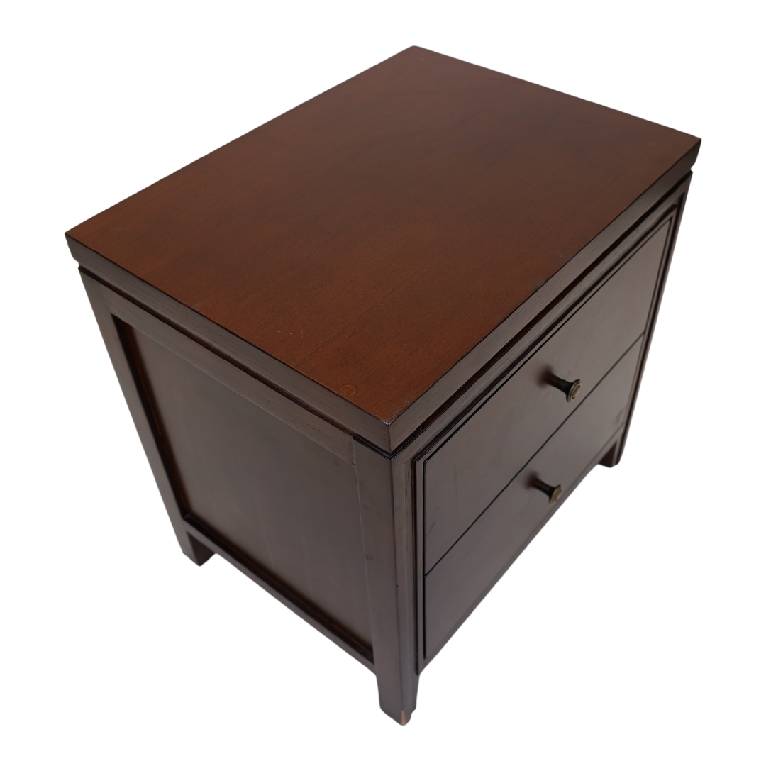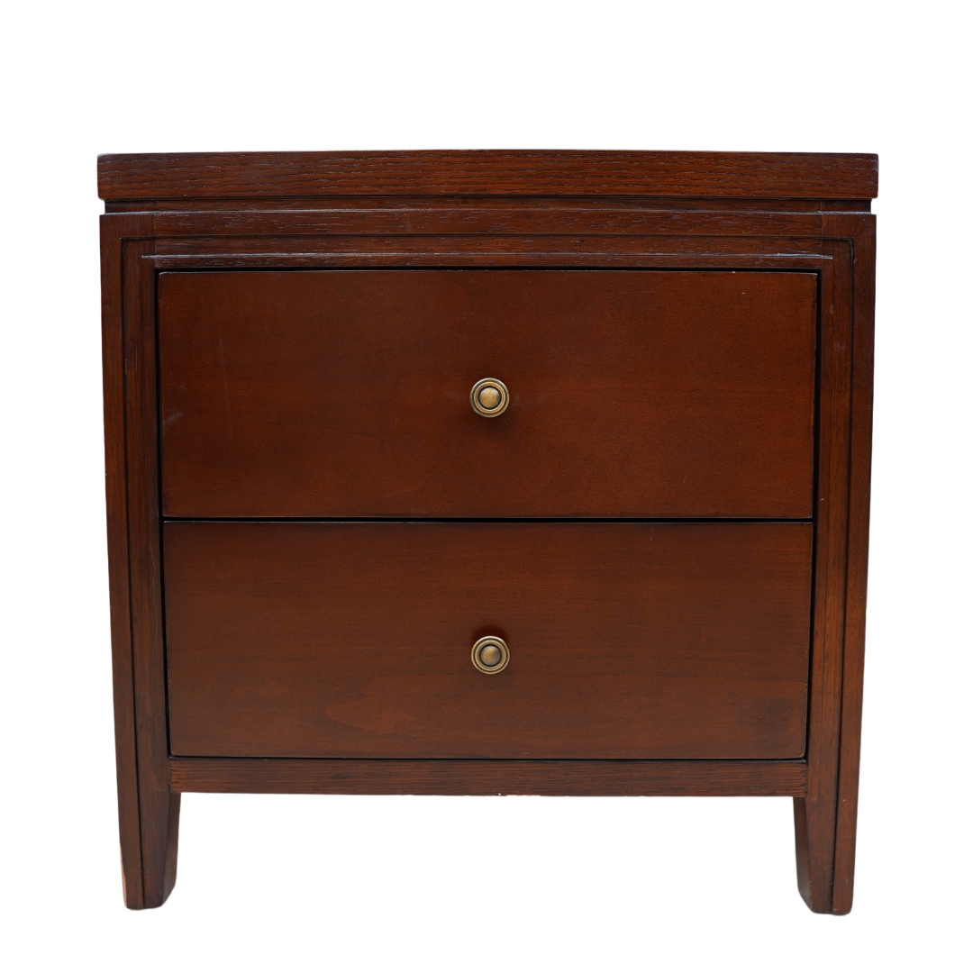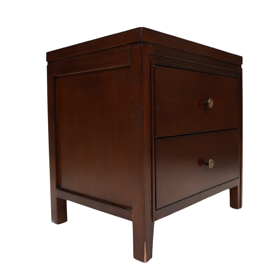 Introducing the Classic Small Chest of Brown Wood with Two Drawers, a tasteful and functional addition to your living space. It has some minor scratches that do not affect its aesthetics or function.