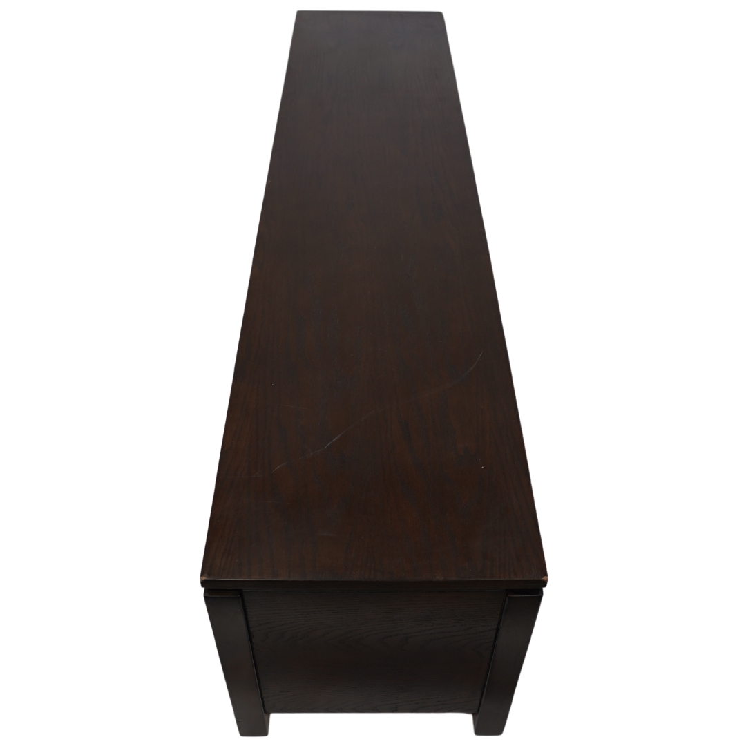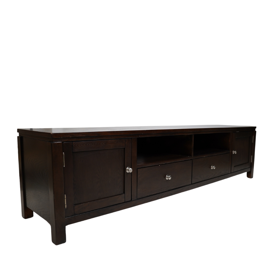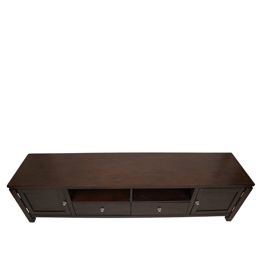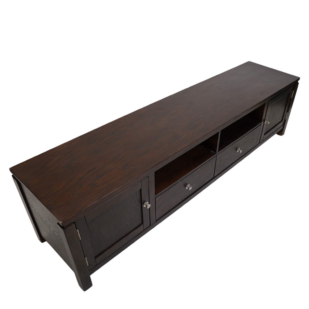 Our Elegant Wooden TV Table with Storage Space is a statement piece designed to elevate your entertainment area with style and functionality. It has some minor scratches that do not affect its aesthetics or function.