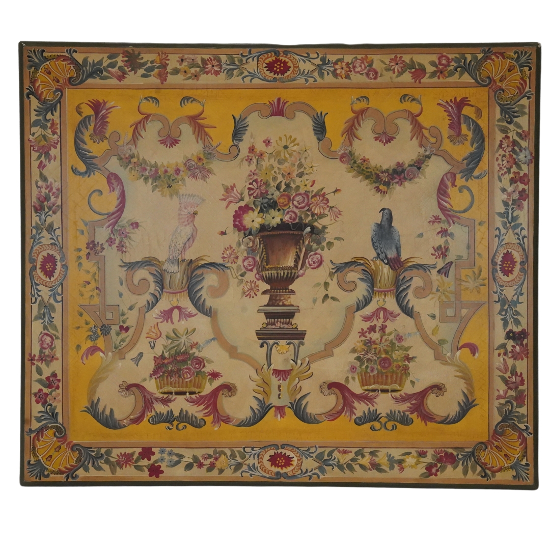 The European Elegance Painting is a captivating piece of art that encapsulates the beauty of European aesthetics with a focus on intricate floral details and charming birds. This old painting transports viewers to a bygone era, where nature and craftsmanship were celebrated in equal measure.