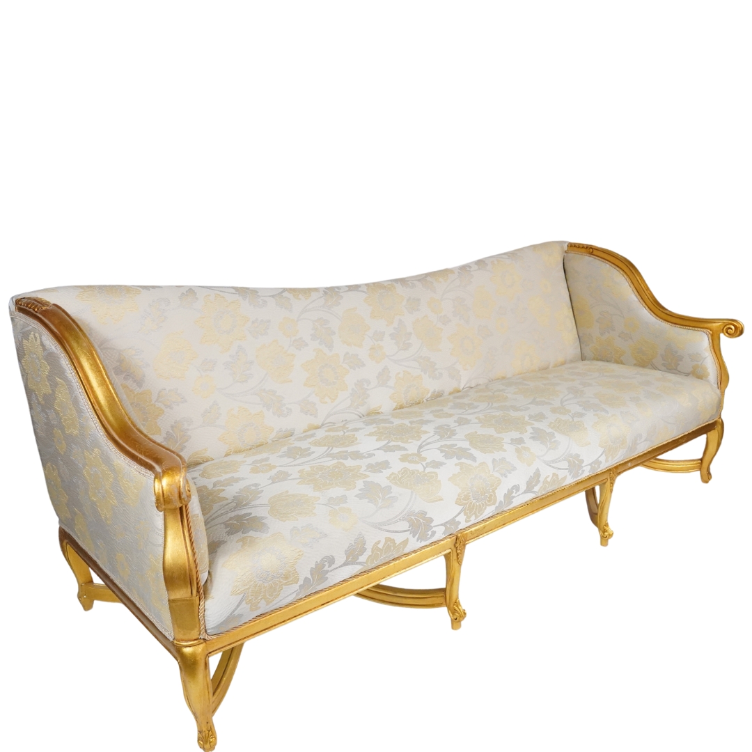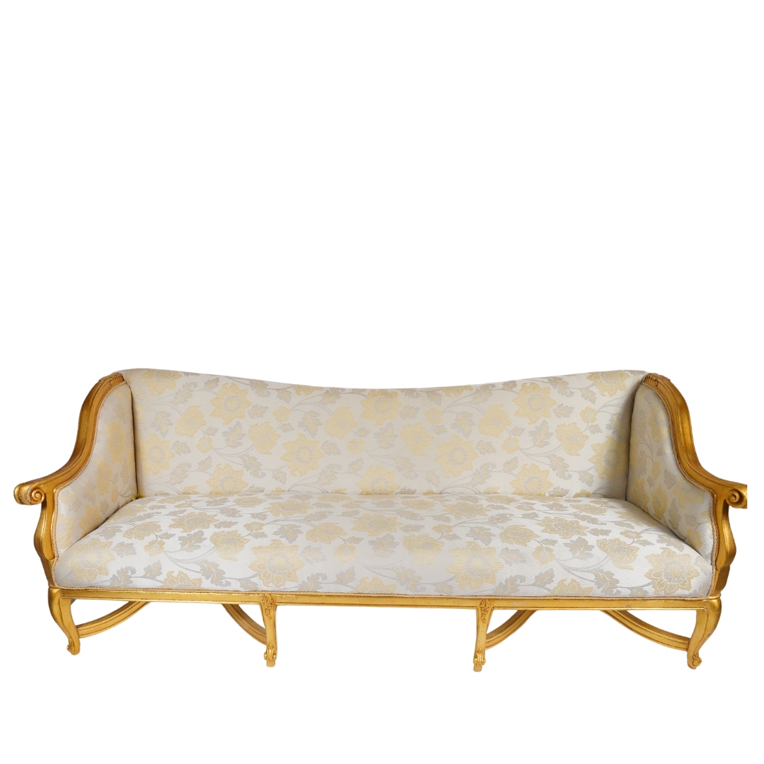 Royal Sofa with White Floral Patterns and Golden Legs