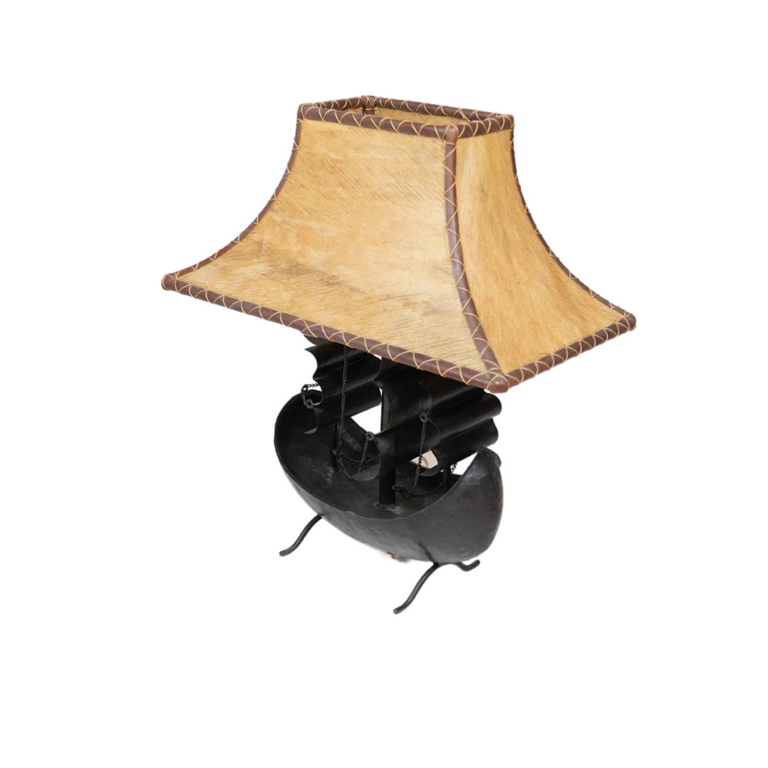 Elevate your decor with our extraordinary antique lamp crafted in the shape of a ship, a true work of art that combines the allure of vintage aesthetics with the spirit of the sea. This remarkable lamp is not only a source of illumination but also a captivating statement piece that adds maritime charm to your living space.